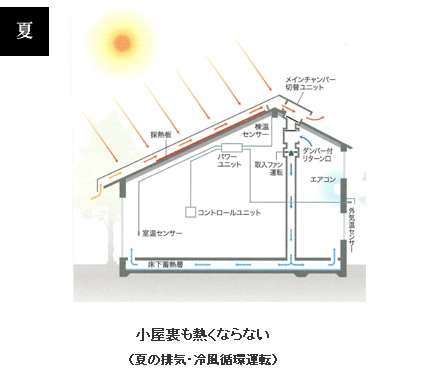 その時は、ファンの働きによって、屋根下の熱を帯びた空気は、そのまま外へ排気されます。